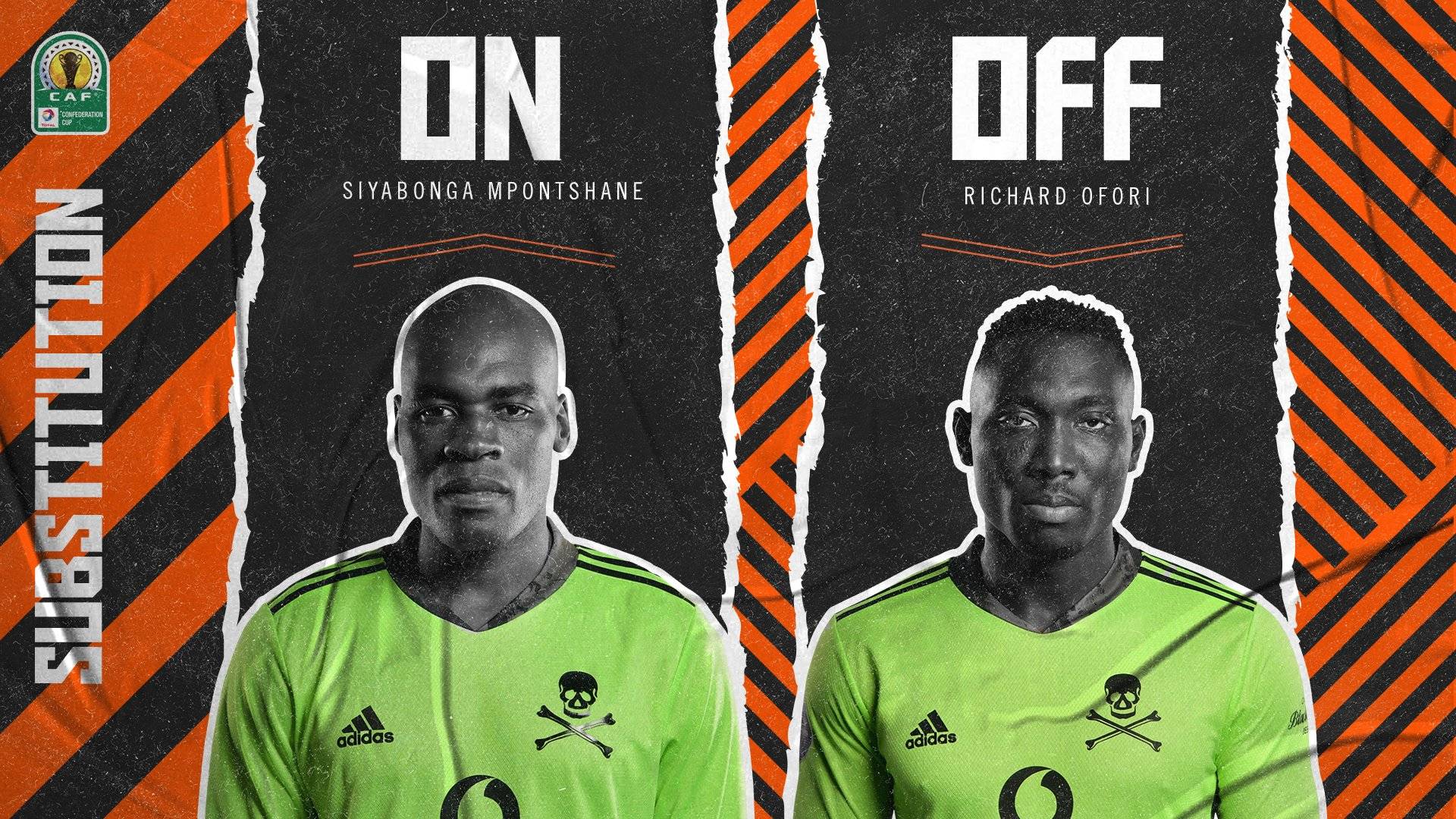 The former Maritzburg goalie was swiftly stretched off by the medical team and was replaced immediately by Siyabonga Mpontshane.