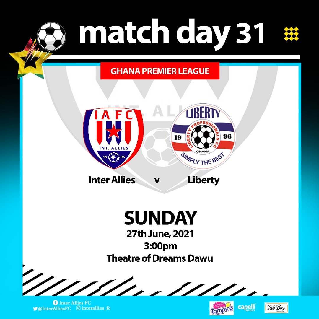 Inter Allies will host Liberty Professionals in their penultimate home game of the 2020/21 Ghana Premier League season.